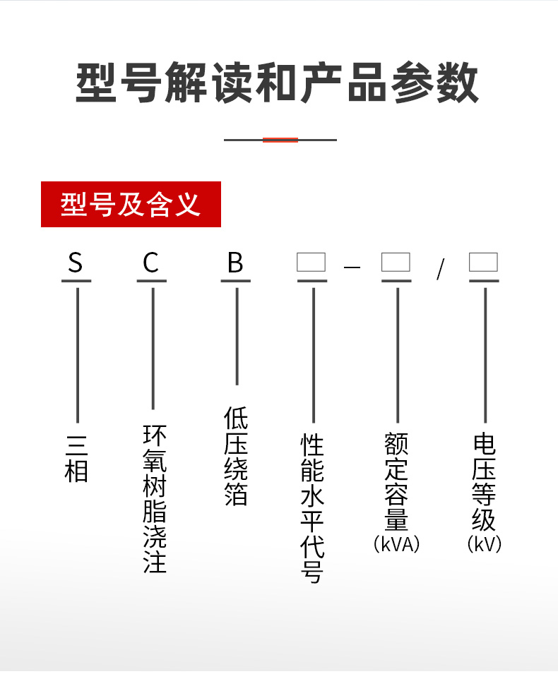 在使用SCBH19非晶合金干式變壓器時(shí),還需要注意其一些關(guān)鍵參數(shù)。首先是額定功率。根據(jù)實(shí)際需求,選擇合適的額定功率,以確保變壓器能夠正常工作,不會(huì)發(fā)生過(guò)載或欠載的情況。其次是額定電壓。根據(jù)電網(wǎng)的電壓要求,選擇相應(yīng)的額定電壓,以保證變壓器能夠穩(wěn)定地將電能傳輸?shù)侥繕?biāo)設(shè)備,SCBH19非晶合金干式變壓器的具體參數(shù)如下